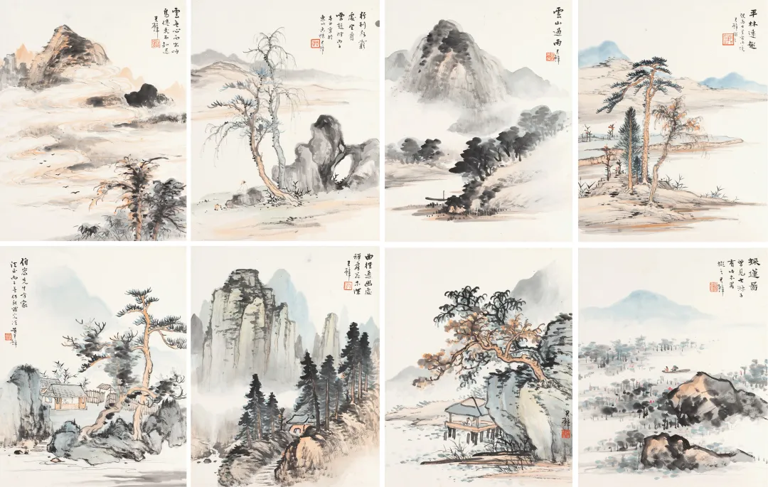 黄君璧的《仿古山水册》,乍一听是“仿古”,可别以为就是老掉牙地照葫芦画瓢,这里头可有不少新鲜门道。